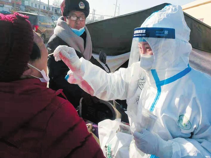 曲周縣醫(yī)院外科副護(hù)士長(zhǎng)孟曉娜和三名隊(duì)友9日在邢臺(tái)市南宮區(qū)豐翼中學(xué)負(fù)責(zé)師生采樣工作。4名護(hù)士在戶外從早8時(shí)一直工作到下午5時(shí)多,完成全部師生的采樣工作才吃午飯。孟曉娜說,在戶外采樣雖然很冷,但當(dāng)?shù)鼐用駛円矠樗齻兯蛠?lái)暖貼和熱水。“作為醫(yī)務(wù)人員,這是我們的使命與責(zé)任,能盡微薄的一份力,我們也覺得心中暖融融。”