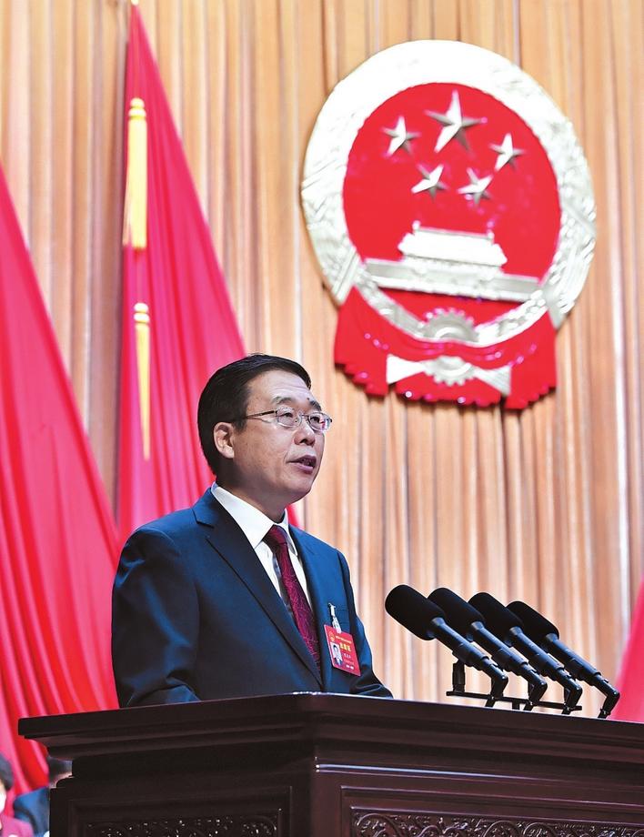 樊成華作政府工作報(bào)告。 鞏玉強(qiáng)、胡曉華攝