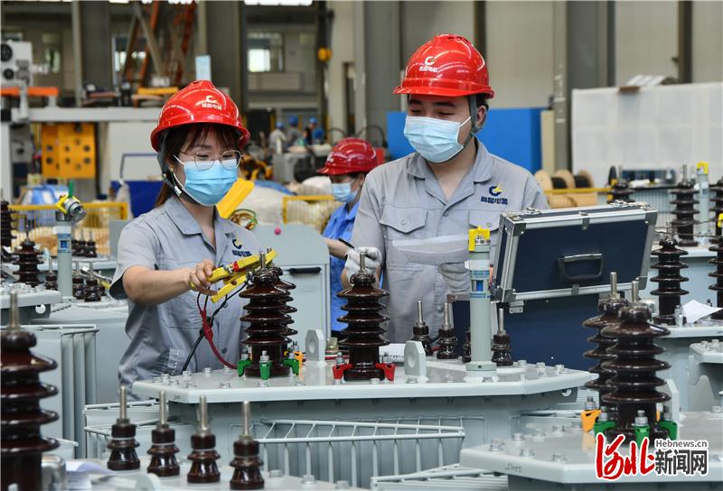 日前,在位于河北永年工業(yè)園區(qū)的河北高晶電器設(shè)備有限公司,工人正在車間檢測變壓器。河北日報通訊員胡高雷攝