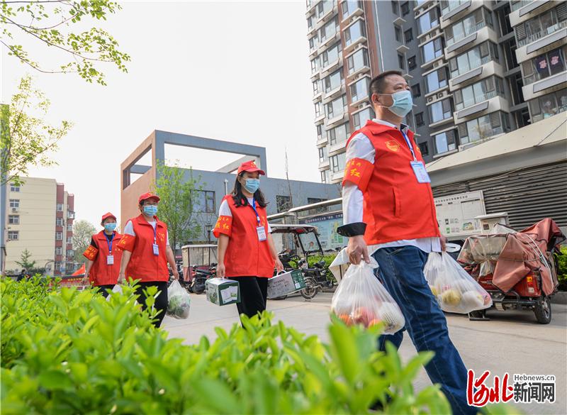 近日,復(fù)興區(qū)志愿者為社區(qū)居民運送生活物資。河北日報通訊員王伸攝