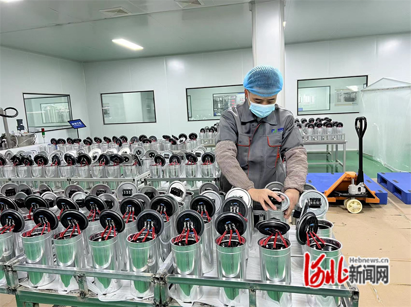 1月13日,曲周縣河北福赫電氣科技有限公司工人在電容器生產(chǎn)線進行產(chǎn)品灌膠。通訊員陳躍飛攝