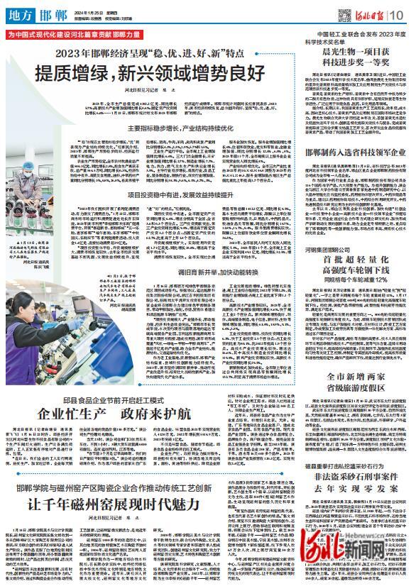 2023年邯鄲經(jīng)濟呈現(xiàn)“穩(wěn)、優(yōu)、進、好、新”特點