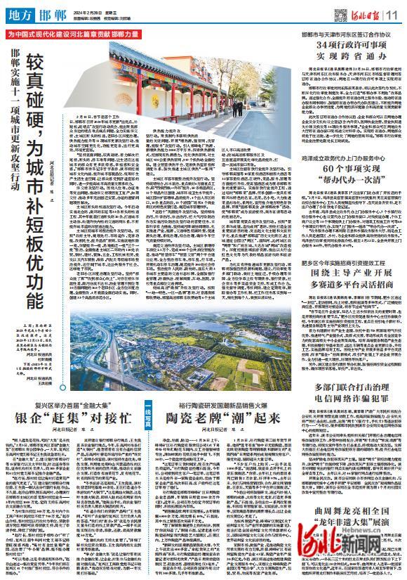 2月18日,春節(jié)后首個工作日,邯鄲市召開2024年城市更新“出亮點、補短板、疏堵點”攻堅行動動員會,提出聚焦群眾身邊的堵點難點痛點問題,全力實施保交樓、主城區(qū)斷頭路暢通、老舊小區(qū)深度治理、供熱能力提升等11項城市更新攻堅行動,推動城市空間更優(yōu)化、功能更完備、出行更高效、環(huán)境更宜居。
