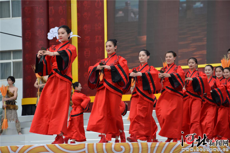 5月10日上午,首屆衡水老白干酒文化節(jié)暨衡水老白干封壇原液首發(fā)儀式正式開幕。圖為節(jié)目漢代舞劇《冀州獻糧 哺足天下》劇照。記者翟一杉攝