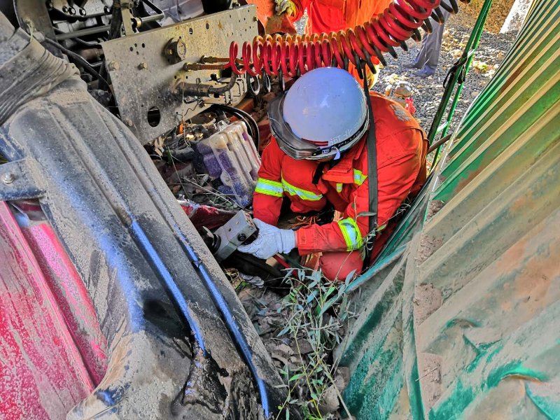 救援人員到達(dá)現(xiàn)場后經(jīng)偵查和詢問了解,事故原因為貨車會車過程中躲閃不及造成側(cè)翻。事故發(fā)生后,由于撞擊力過大,貨車駕駛室嚴(yán)重變形,駕駛員并未受傷,但1名隨車人員被卡在駕駛室后排位置。因內(nèi)部空間狹小,被困人員受到驚嚇,情緒非常激動。了解現(xiàn)場情況后,消防救援人員利用液壓頂桿、液壓擴(kuò)張器和撬棍等破拆器材對被困男子進(jìn)行施救,經(jīng)40分鐘左右的緊急救援,消防救援人員成功將被困人員救出,交由現(xiàn)場的醫(yī)療救護(hù)人員。目前,已脫離生命危險。(郭憲光)