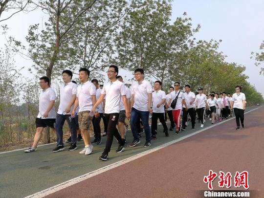 民眾在衡水湖健步路上行走!⊥貔i攝