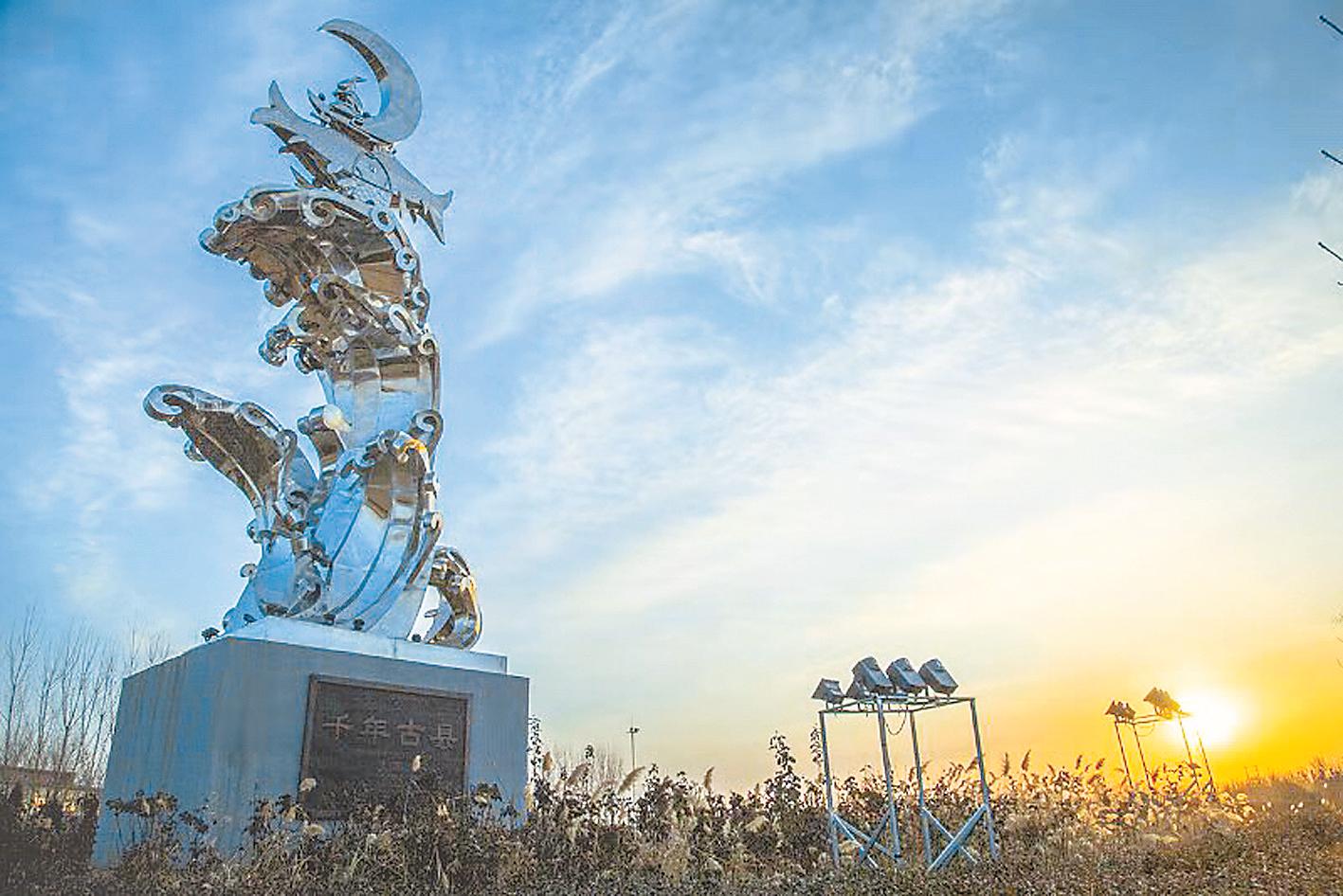 近年來,按照黨和國家“讓文物活起來”的指導(dǎo)精神,武強(qiáng)縣以武強(qiáng)年畫為依托,積極研發(fā)文化創(chuàng)意產(chǎn)品,全方位展現(xiàn)“千年古縣、文盛武強(qiáng)”的文化魅力。圖為畫鄉(xiāng)公園新竣工的“三魚爭月”雕塑。該作品來源于古老的武強(qiáng)年畫《三魚爭月》,與武強(qiáng)年畫代表作《六子爭頭》系同一思維方式,并使用民間年畫中慣用的諧音手法,意為“三魚爭躍”,以升騰景象,顯示了身在燕趙腹地的畫鄉(xiāng)人獨(dú)特的智巧與幽默,鼓舞人們奮力追夢,爭取美好幸福的生活。王清芝攝