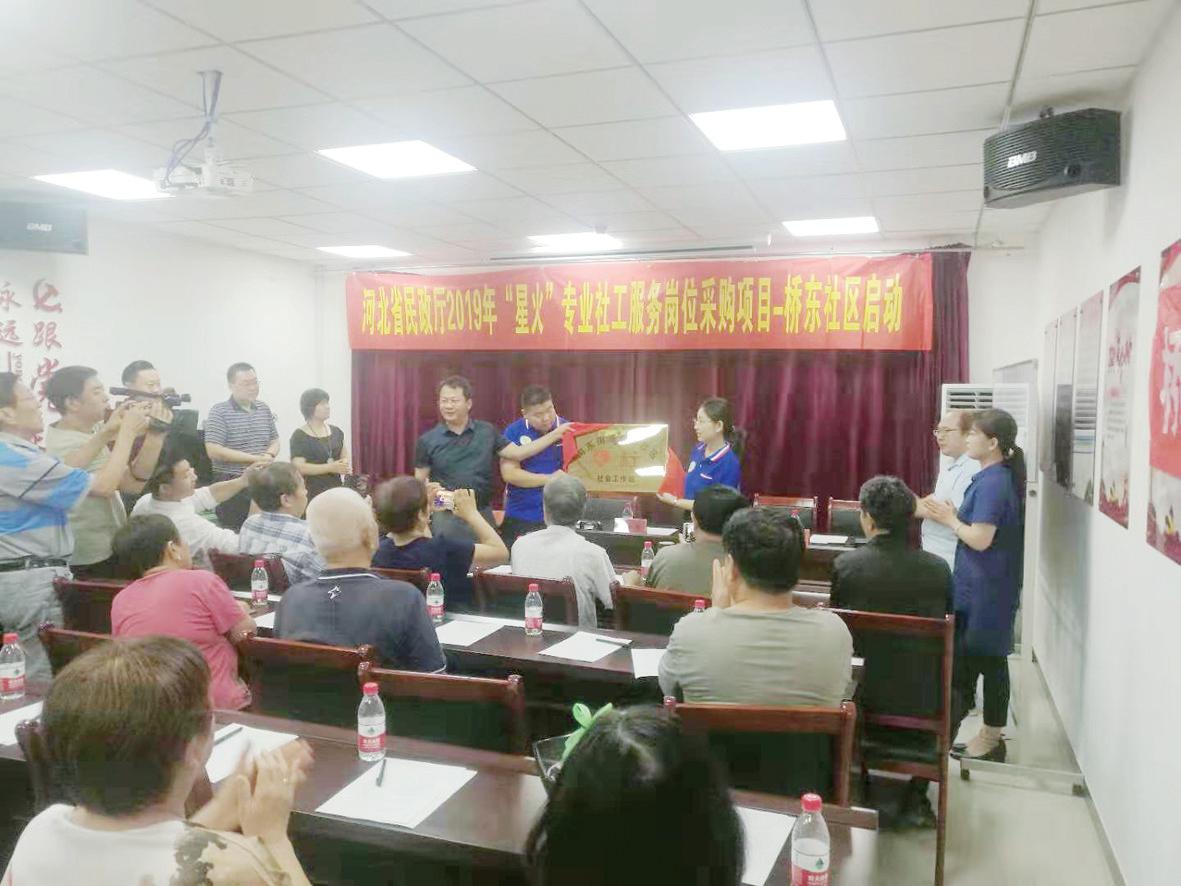 15日上午,2019年河北省民政廳“星火”項目啟動暨橋東社區(qū)社會工作站(我市首家)掛牌儀式在桃城區(qū)河?xùn)|街道橋東社區(qū)黨群服務(wù)中心舉行。相關(guān)部門負(fù)責(zé)同志、社區(qū)社會組織代表及社區(qū)工作骨干參加了本次活動。
