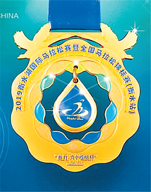 對(duì)于每一位參加馬拉松的跑者來說,完賽獎(jiǎng)牌不僅是榮耀的象征,也是汗水和毅力的展示,更是“永不言棄”精神的詮釋。日前,2019衡水湖國(guó)際馬拉松賽賽事組委會(huì)公布了本屆馬拉松賽完賽獎(jiǎng)牌,獎(jiǎng)牌融入衡水湖、荷花、青頭潛鴨等元素,別具匠心地體現(xiàn)了衡水湖特色。