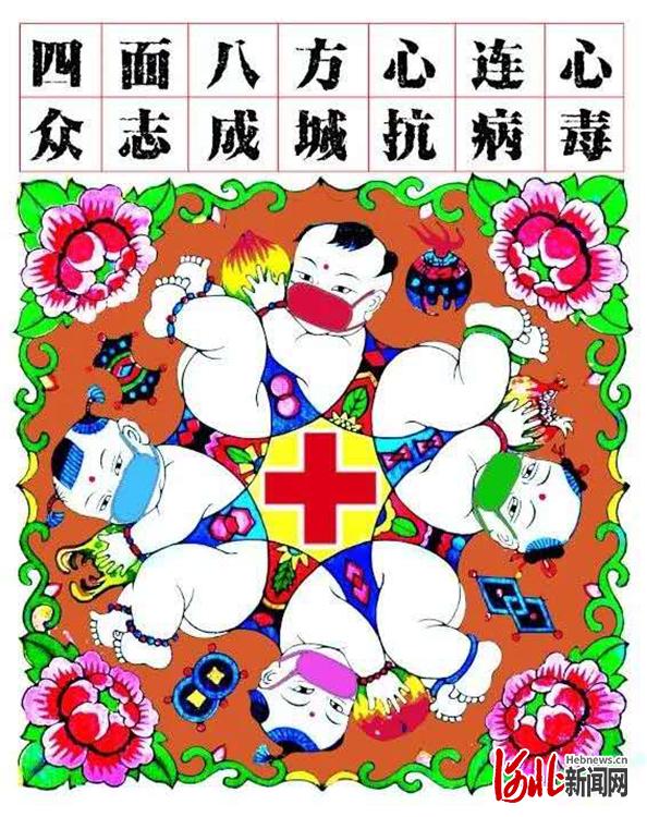 為充分彰顯武強年畫之鄉(xiāng)的特色,由武強年畫研究會總策劃,劉兵總設計,吳興偉等工美大師及年畫作者創(chuàng)作設計了一組“萬眾一心、共戰(zhàn)疫情”的新年畫,表明了他們與全國人民“團結(jié)一心,共克時艱,戰(zhàn)勝瘟疫”的決心。