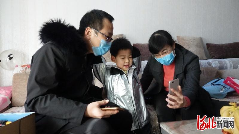共青團(tuán)衡水市委組織開展“你我攜手,關(guān)愛醫(yī)護(hù)”主題活動(dòng),走訪慰問奮戰(zhàn)在武漢抗疫一線的醫(yī)護(hù)人員。圖為共青團(tuán)衡水市委工作人員(右一)慰問支援湖北醫(yī)療隊(duì)隊(duì)員、衡水市人民醫(yī)院醫(yī)生齊娜家人時(shí),與齊娜視頻連線。河北日?qǐng)?bào)記者焦磊攝