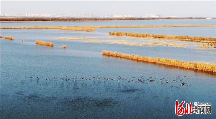南遷候鳥在衡水湖上空嬉戲飛翔。(資料片)河北日?qǐng)?bào)記者趙海江 趙杰攝