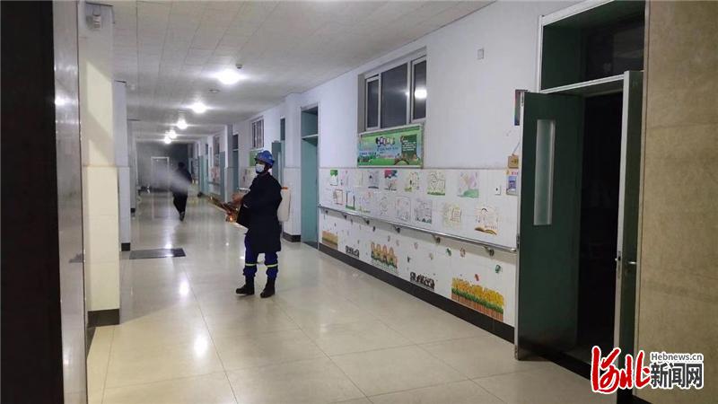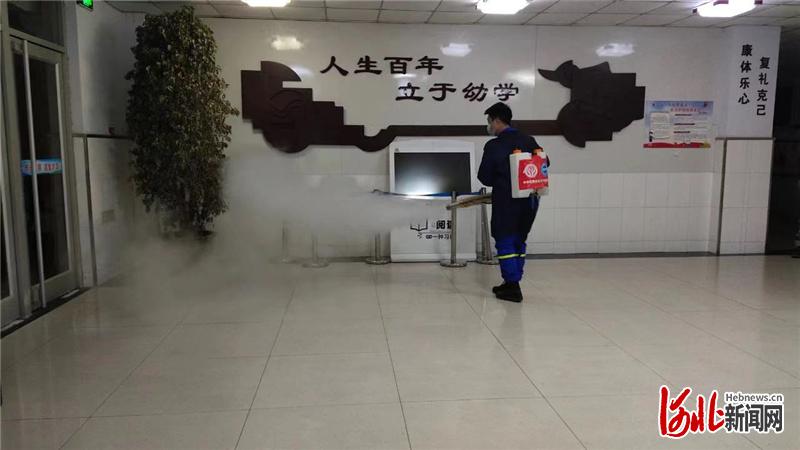 連日來,衡水藍天救援隊積極組織隊員,對多所中小學校園進行消殺工作。 河北日報通訊員杜俊穎攝
