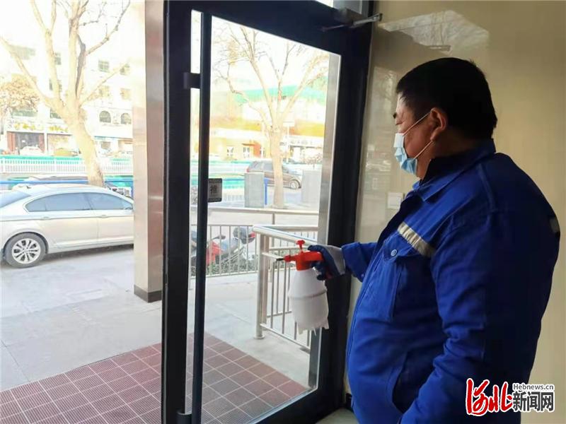 衡水環(huán)衛(wèi)工人對人員進(jìn)行消毒。河北日報通訊員杜俊穎攝