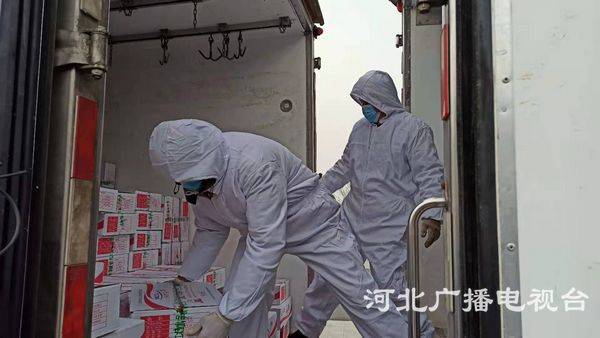 上午10時,5噸京安豬肉、7.5噸星火雞蛋、5噸蒙牛牛奶、6噸饒陽蔬菜、10噸消毒液已準(zhǔn)備就緒。在衡水市發(fā)改委、衡水市農(nóng)業(yè)農(nóng)村局相關(guān)負(fù)責(zé)人把衡水市委、市政府給邢臺市人民的慰問信轉(zhuǎn)交到邢臺市發(fā)改委負(fù)責(zé)人手中后,20名工人帶好口罩、穿上防護(hù)服開始接力轉(zhuǎn)移物資!把巯抡且荒曛凶罾涞臅r候,很多醫(yī)務(wù)工作者和執(zhí)勤值守工作人員沖在前線守衛(wèi)大家平安,能為他們盡早送去一份溫暖,是我們衡水市人民的榮幸,同時也向嚴(yán)寒中奮戰(zhàn)的每一個人致敬!”裝卸工人路澤浩一邊忙著裝貨一邊激動地說道。