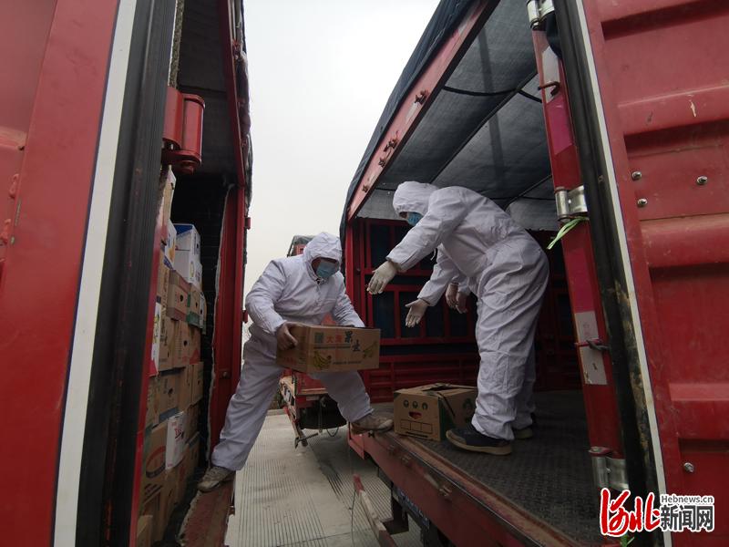 當(dāng)天上午,在邢衡高速衡水湖西服務(wù)區(qū),一場(chǎng)守望相助的愛(ài)心傳遞溫暖了寒冬。5噸京安豬肉、7.5噸星火雞蛋、5噸蒙牛牛奶、6噸饒陽(yáng)蔬菜、10噸消毒液……飽含情誼的防疫物資和生活物資,在20名衡水裝卸工人的接力下,順利搬運(yùn)到邢臺(tái)市的防疫物資專用車上。寒風(fēng)凜冽,工人們的身上卻冒著熱氣!澳転閳(jiān)守在疫情防控一線的醫(yī)務(wù)工作者和執(zhí)勤值守工作人員盡早送去一分溫暖,再累也值得!”裝卸工人路澤浩搬完了幾十箱雞蛋后,頭上已經(jīng)滲出了汗珠。
