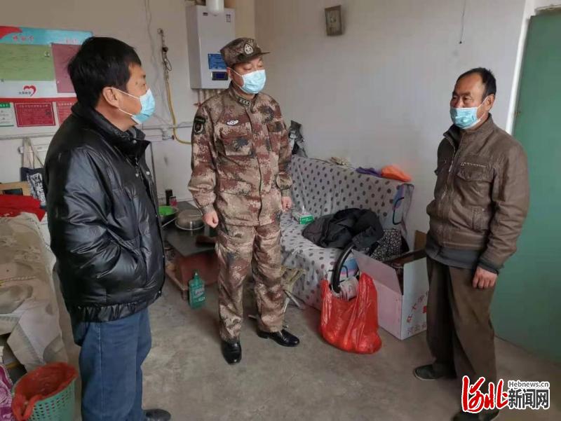 圖為武強縣人武部政委曹永雷(中)到貧困戶家中慰問。夏洪濤攝
