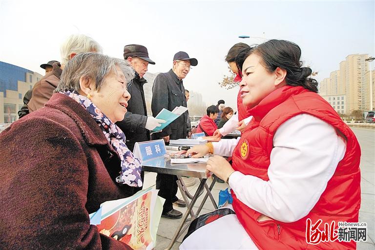 日前,在衡水市學(xué)雷鋒志愿服務(wù)活動中,醫(yī)生志愿者在街頭為市民義診。 河北日報記者焦磊攝
