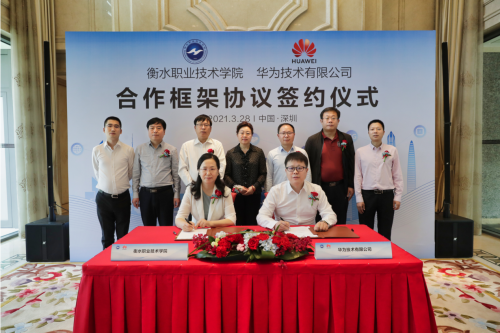 3月28日,衡水職業(yè)技術(shù)學(xué)院與華為技術(shù)有限公司在深圳華為總部簽署合作框架協(xié)議,雙方商定成立衡水職業(yè)技術(shù)學(xué)院華為ICT學(xué)院,共同開展專業(yè)建設(shè)和人才培養(yǎng),共建創(chuàng)新創(chuàng)業(yè)基地、共建認(rèn)證課程體系,在大數(shù)據(jù)、物聯(lián)網(wǎng)、人工智能等專業(yè)領(lǐng)域以及智慧校園建設(shè)方面進(jìn)行深度合作。