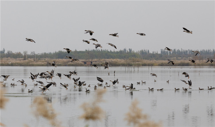 衡水湖國家級自然保護區(qū)是由草甸、水域、林地、灘涂等多種生態(tài)環(huán)境組成的天然濕地生態(tài)系統(tǒng),是多種候鳥不同遷徙路線的密集交匯區(qū),每年10月中旬至11月初,大批候鳥選擇來這里停歇、嬉戲、覓食,成為衡水湖深秋一道靈動的風(fēng)景線。