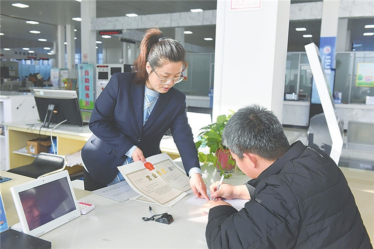 企業(yè)負(fù)責(zé)人來(lái)到景縣行政審批局企業(yè)服務(wù)中心工作窗口辦理業(yè)務(wù)。高雷攝