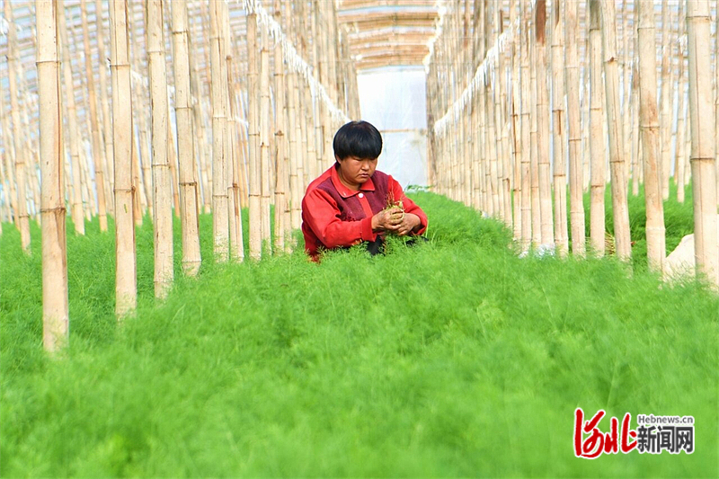 11月7日,饒陽(yáng)縣大尹村鎮(zhèn)呂漢村村民張香團(tuán)在棚室里收茴香。河北日?qǐng)?bào)記者焦磊攝