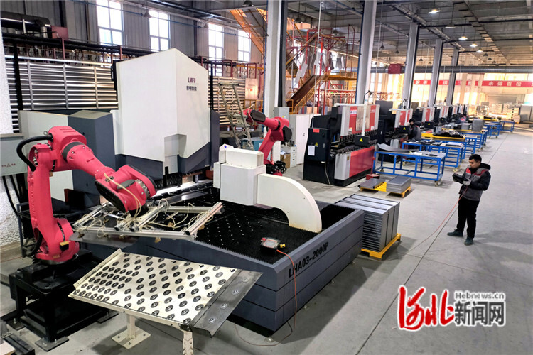 1月28日,在黎明國(guó)際智能家居(深州)有限公司生產(chǎn)車(chē)間內(nèi),工人在操作機(jī)械臂生產(chǎn)鋼制家具配件。河北日?qǐng)?bào)記者焦磊攝