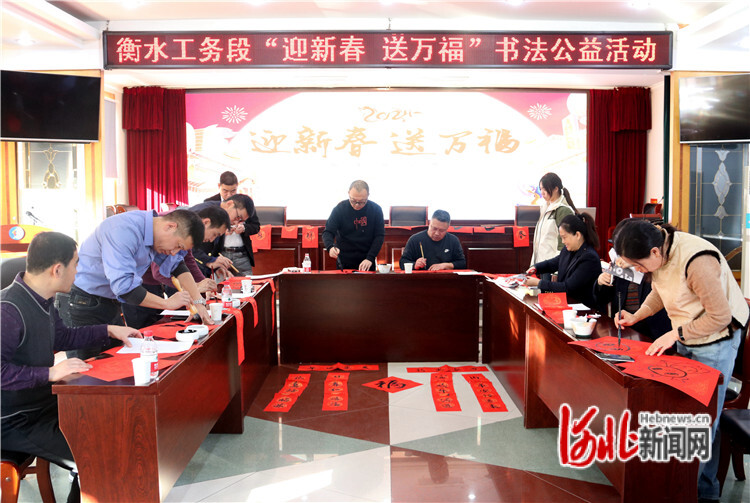 河北網訊(李建章、張羽)新春將至,年味漸濃。為大力弘揚中華優(yōu)秀傳統(tǒng)文化,豐富廣大職工的精神文化生活,營造歡樂祥和的節(jié)日氛圍和健康和諧的企業(yè)文化氛圍,1月24日,中國鐵路北京局集團公司衡水工務段黨委、工會組織開展了“送萬福、進萬家”書法公益活動。