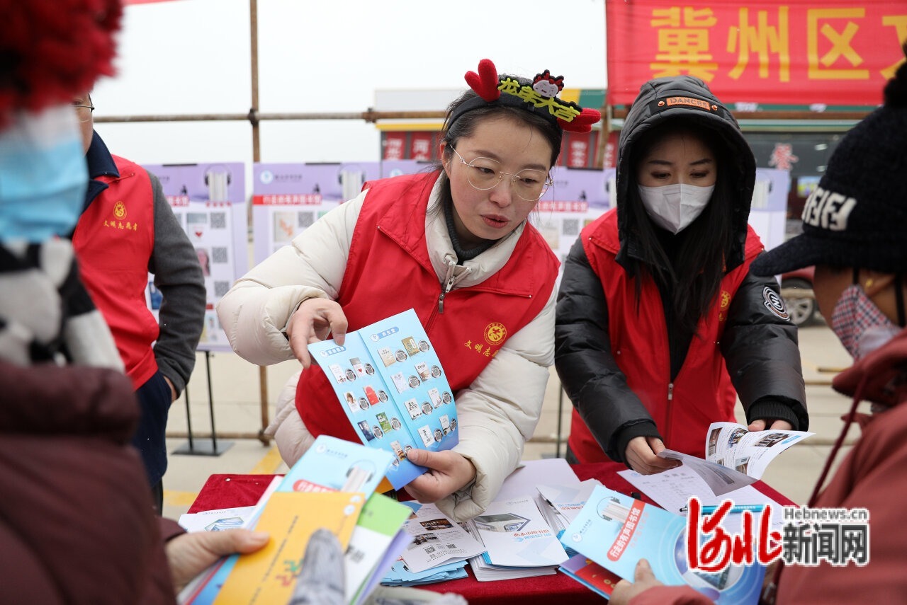 1月16日,在衡水市文化科技衛(wèi)生“三下鄉(xiāng)”集中示范活動現(xiàn)場,工作人員向群眾贈送春聯(lián)。河北日報通訊員陳康攝
