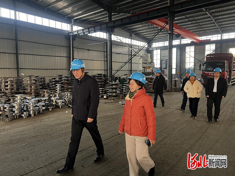 圖為故城縣人社局局長王連峰、衡水銀行故城分行行長張立泰在河北浩達(dá)頤和機(jī)械設(shè)備有限公司車間調(diào)研。