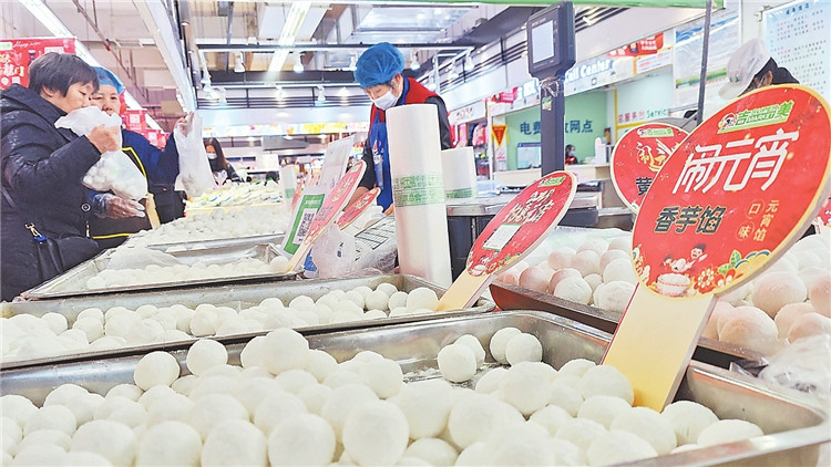 元宵節(jié)將至,象征團(tuán)圓美滿的元宵成為市民餐桌上的主角。記者走訪衡水市多家超市發(fā)現(xiàn),黑芝麻、草莓、藍(lán)莓、椰奶、榴蓮等多種口味的元宵紛紛上市,并占據(jù)了超市的顯著位置。圖為市民在超市選購(gòu)元宵。夏曉婷攝