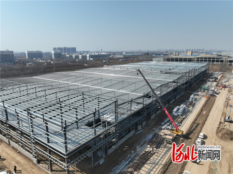 3月9日,安平縣安恒綠色產(chǎn)業(yè)園項目建設(shè)現(xiàn)場,工人們正在加緊施工。河北日報通訊員田暢攝