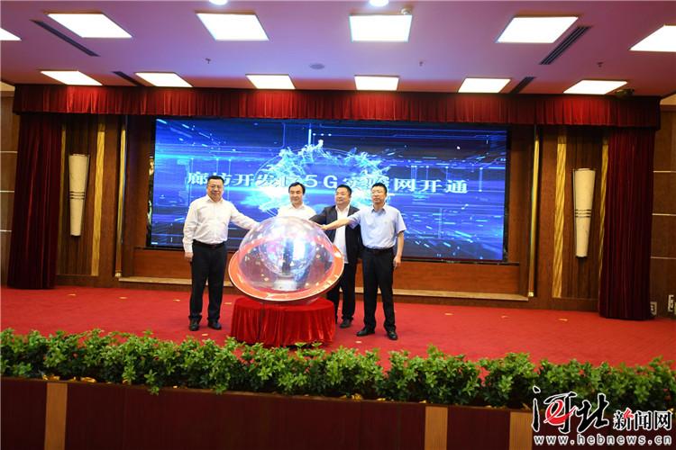 5月15日,廊坊開發(fā)區(qū)5G實驗網開通運行儀式現(xiàn)場,與會領導共同啟動水晶球。許征攝