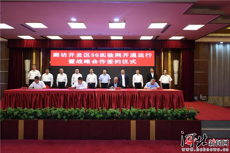 5月15日,廊坊開發(fā)區(qū)與華為、聯(lián)通、電信簽署5G實驗網應用戰(zhàn)略合作協(xié)議。許征攝
