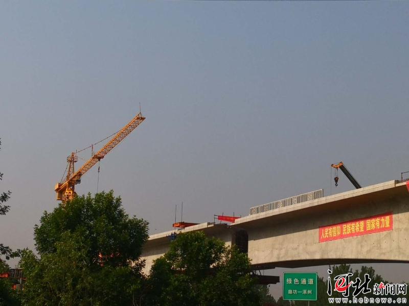京雄城際鐵路廊坊段第一轉(zhuǎn) 跨廊涿高速連續(xù)梁成功轉(zhuǎn)體