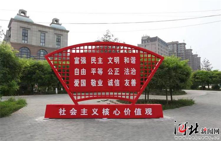 以“立體化全覆蓋”為標準,香河形成濃厚的文明創(chuàng)建氛圍。圖為遍布縣城社區(qū)的社會主義核心價值觀宣傳雕塑。