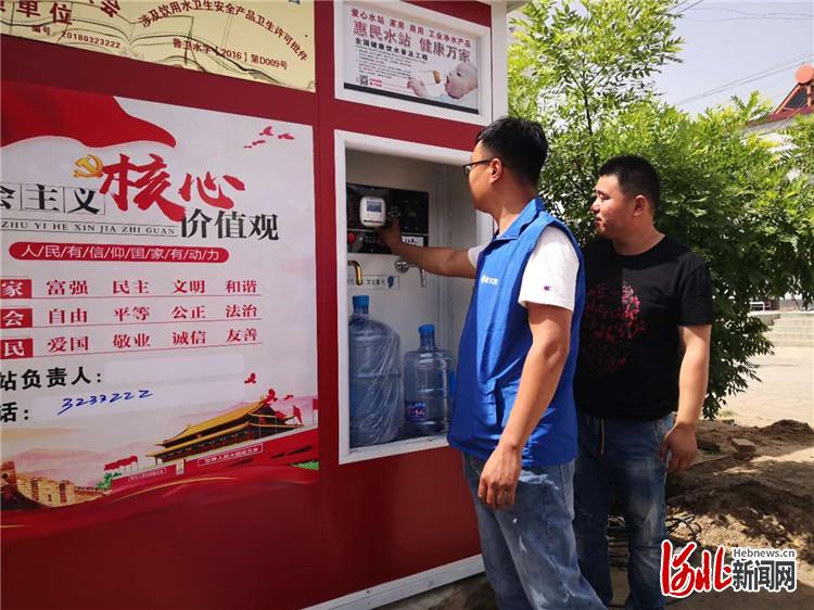 6月3日,文安縣大留鎮(zhèn)鎮(zhèn)黃李村健康惠民水站完成安裝調(diào)試,正式投入使用。圖為廊坊艾渡商貿(mào)有限公司工作人員指導(dǎo)文安縣大留鎮(zhèn)鎮(zhèn)黃李村村民刷卡買水。