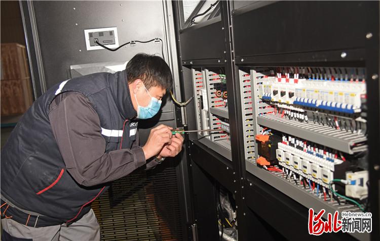 固安阿爾西環(huán)境科技有限公司是一家生產(chǎn)工業(yè)化制冷設備的企業(yè),主要為數(shù)據(jù)中心機房、電信基站以及醫(yī)療配套等行業(yè)提供專業(yè)的制冷空調、精密空調。圖為工作人員調試設備。 通訊員李泳辰攝