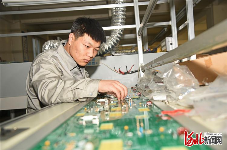 固安信通信號技術股份有限公司位于固安高新區(qū)京南科創(chuàng)谷,成立于1993年,是固安本地成長起來的企業(yè),專注于軌道交通信號系統(tǒng)關鍵設備的研發(fā)、生產(chǎn)、銷售和維護業(yè)務。圖為工作人員組裝電路板。 通訊員李泳辰攝