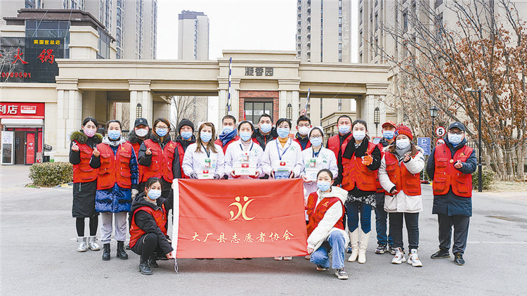 黨有號(hào)召,團(tuán)有行動(dòng)。河北疫情發(fā)生后,廊坊市各級(jí)團(tuán)組織、廣大青年聞令而動(dòng)、迅速集結(jié),招募1600余名志愿者,按照黨委政府的統(tǒng)一部署,分赴160個(gè)村街社區(qū)開展卡口執(zhí)勤、信息登記、秩序維護(hù)、物資運(yùn)送等志愿服務(wù);已成立醫(yī)療、交通、供電、消防等領(lǐng)域青年突擊隊(duì)82支,奮戰(zhàn)在抗疫情、保運(yùn)轉(zhuǎn)一線,以實(shí)際行動(dòng)奉獻(xiàn)擔(dān)當(dāng)、守護(hù)廊坊。 圖為大廠青年志愿者開展送便民藥箱進(jìn)社區(qū)活動(dòng),為居民免費(fèi)送藥上門。 通訊員施團(tuán)偉攝影報(bào)道