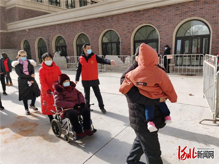 固安縣工商聯(lián)黨員志愿者組織群眾進行核酸檢測。