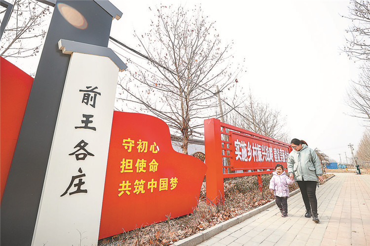 尖塔鎮(zhèn)前王各莊村村容整潔美麗,村民從村口經(jīng)過。