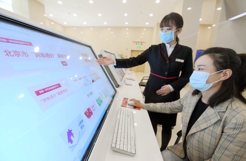 近日,北京城市副中心與河北廊坊“北三縣”政務(wù)服務(wù)“區(qū)域通辦”啟動(dòng),共推出453項(xiàng)高頻便民事項(xiàng)和70項(xiàng)政務(wù)服務(wù)事項(xiàng)。雙方采取在兩地政務(wù)服務(wù)中心設(shè)立“區(qū)域通辦”專窗、互設(shè)自助服務(wù)終端、在移動(dòng)端指導(dǎo)辦理等方式方便企業(yè)、群眾異地辦事。 新華社記者王曉攝