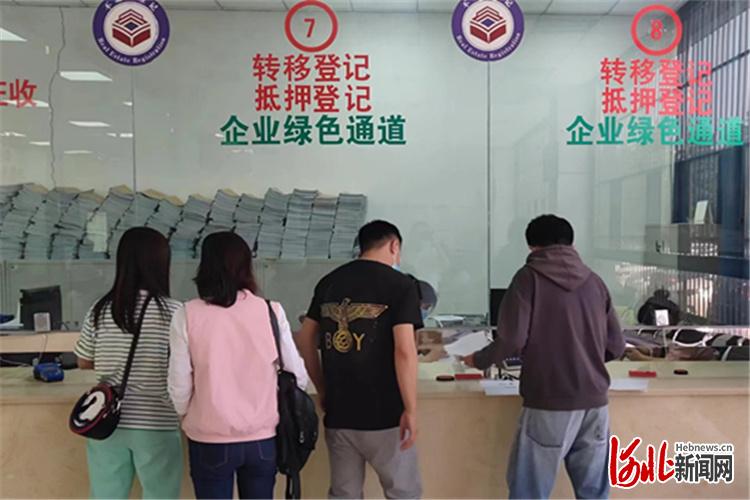 圖為群眾在三河市燕郊不動產(chǎn)登記中心燕郊大廳企業(yè)綠色通道窗口辦理業(yè)務。通訊員王娟攝