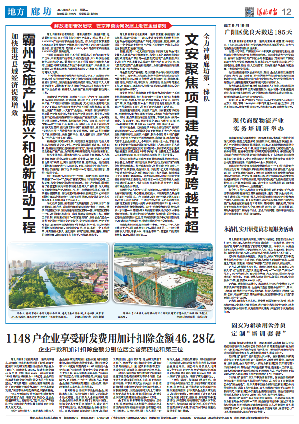 加快推進(jìn)縣域經(jīng)濟(jì)提質(zhì)增效 霸州實(shí)施產(chǎn)業(yè)振興和創(chuàng)新驅(qū)動(dòng)工程