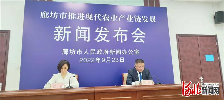 9月23日,廊坊市人民政府新聞辦公室組織召開“廊坊市推進(jìn)現(xiàn)代農(nóng)業(yè)產(chǎn)業(yè)鏈發(fā)展”新聞發(fā)布會,圖為會議現(xiàn)場。通訊員趙保江攝
