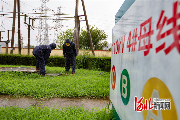 國(guó)網(wǎng)廊坊供電公司員工在龍河220千伏變電站啟動(dòng)排水設(shè)備。通訊員李剛攝