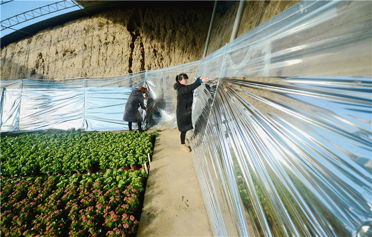 12月20日,固安縣門鐵營村花農(nóng)在大棚內(nèi)整理反光幕。