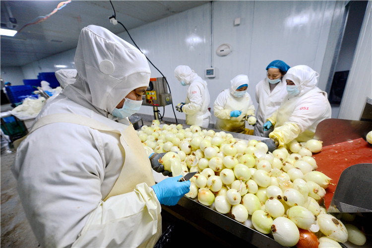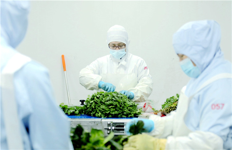 12月20日,工作人員在固安縣一家凈菜加工企業(yè)生產(chǎn)車間內(nèi)作業(yè)。