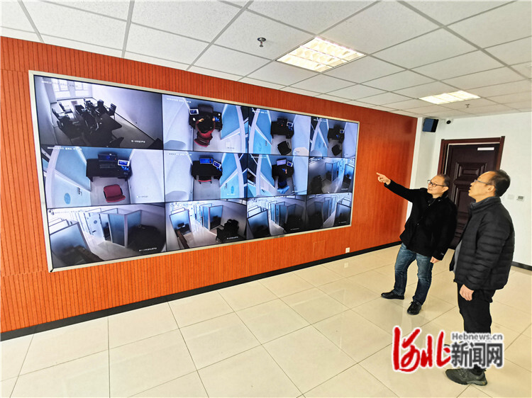 12月15日,在廊坊市公共資源交易中心評標(biāo)區(qū),廊坊市財政局政府采購科工作人員通過監(jiān)控系統(tǒng)查看評審專家評標(biāo)打分情況。河北日報記者劉杰攝